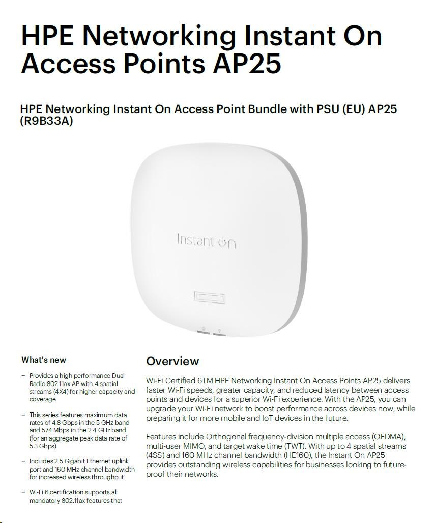HPE Networking Instant On Access Point Bundle with PSU (EU) AP25 (R9B33A)