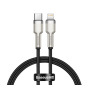 Kabel BASEUS Cafule Metal Series je odolný kabel, ve kterém jsou konce zástrček potaženy slitinou zinku, aby přežily dlouhé a intenzivní používání. Výrobek je také vybaven speciálním nylonovým opletením, které zabraňuje tření a chrání tak kabely uvnitř. Rovněž se zvýšila trvanlivost zástrček - prošly testem 10 000 připojení a byly speciálně profilovány tak, aby bylo možné kabel použít, i když je telefon v pouzdře. Kabel má funkci rychlého nabíjení PD 20W a přenosu dat. Jeho délka je 200 cm.