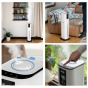 Zvlhčovač vzduchu Levoit OasisMist Smart lze ovládat přímo na přehledném podsvíceném LED displeji nebo také přes aplikaci na chytrých zařízeních Apple nebo Android. Nebo si ho můžete dokonce připojit do svého Smart Home a ovládat hlasem přes Google Assistant nebo Amazon Alexa. Senzor vlhkosti zobrazuje vlhkost v reálném čase a v automatickém režimu tak okamžitě reaguje na změny vlhkosti. Vždy by se mělo jednat o rozmezí mezi 40 % až 60 %. Přes aplikaci si můžete informace kontrolovat nebo si své režimy plánovat.