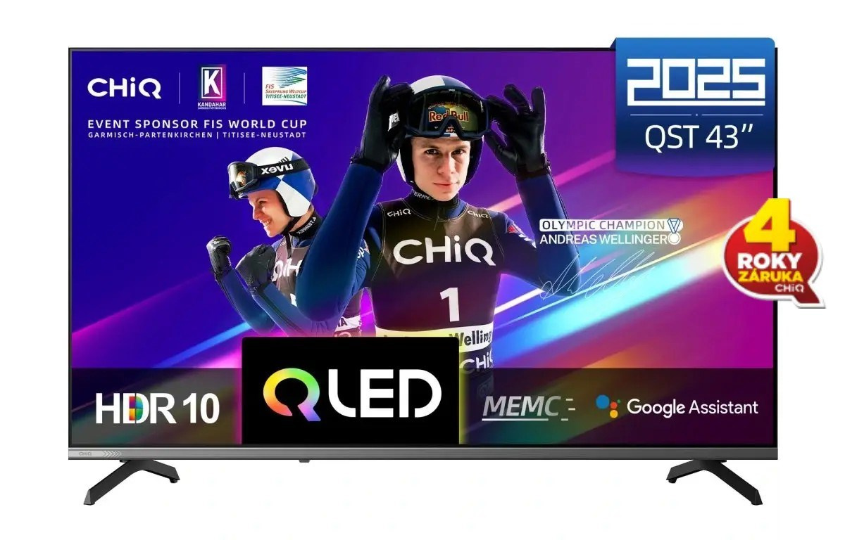 CHiQ U43QST TV 43", UHD, QLED, ultratenká, Google TV, DLG 120 Hz, Dolby Audio, Frameless, metalická