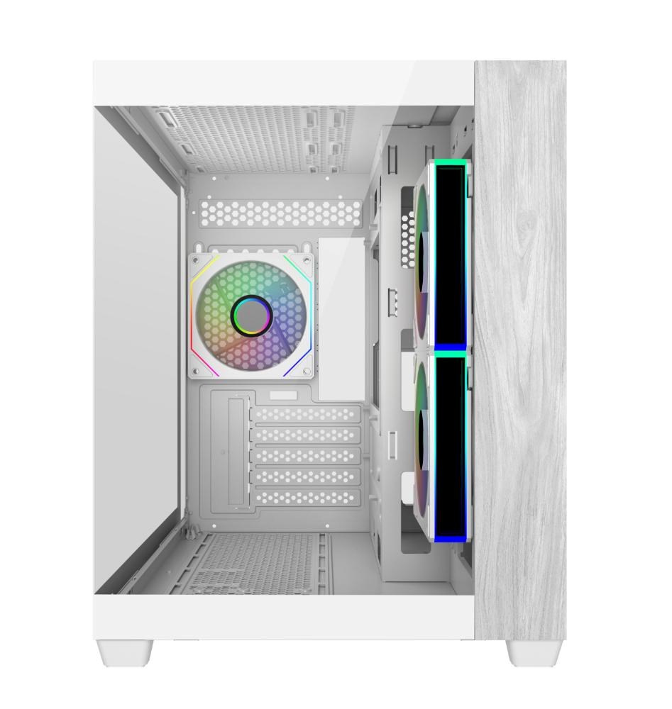 Elite 481 Wood přináší do výkonných počítačových sestav příjemnou domácí estetiku. Díky kompaktnímu dvoukomorovému uspořádání mATX a přednímu panelu vyrobenému ze skutečného přírodního dřeva v sobě spojuje moderní výkon s organickými designovými prvky. Díky bezproblémovým panelům z tvrzeného skla, vertikální podpoře chlazení a kompatibilitě s chladiči plné velikosti je Elite 481 Wood všestrannou skříní, která bez problémů zapadne do obytných prostor, kreativních studií nebo stylových herních sestav.