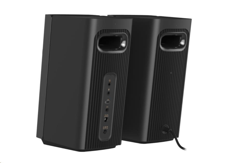 Reproduktorový systém Creative T60 především nabízí celou škálu možností připojení. Kromě zvuku USB-C pro herní konzole obsahuje integrované konektory pro připojení sluchátek a mikrofon, když se potřebujete zúčastnit online pracovního hovoru. Dále je tu praktické a snadno přístupné tlačítko pro přepínání reproduktorů a sluchátek. Nejvyšší čas posunout úroveň výchozího počítačového zvuku někam dál.