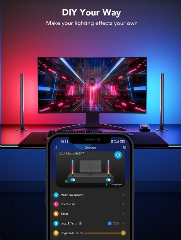 Vylepšete své herní, filmové a hudební zážitky s chytrými světelnými panely Govee Smart Gaming. 16 milionů barev s 62 režimy a 8 režimů pro synchronizaci s hudbou povznesou zážitek ze sledování televize nebo hraní her na novou úroveň. Ovládají se hlasem přes Siri, Amazon Alexa nebo Google Assistant, přes aplikaci nebo přes Smart Dual ovladač. Nebudete proto ani muset vstávat z gauče. Barevné podsvícení opticky zvětšuje obraz, šetří oči a má živostnost až 50.000 hodin.