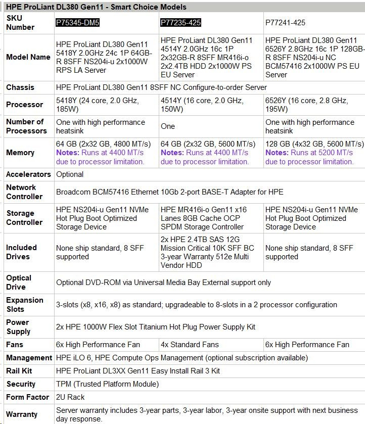 Model Name HPE PL DL380g11 6526Y (2.8G/16C) 4x32G NS204i-u(2x480g) 2x1000W 8SFF 2x10G-T Smart Choice