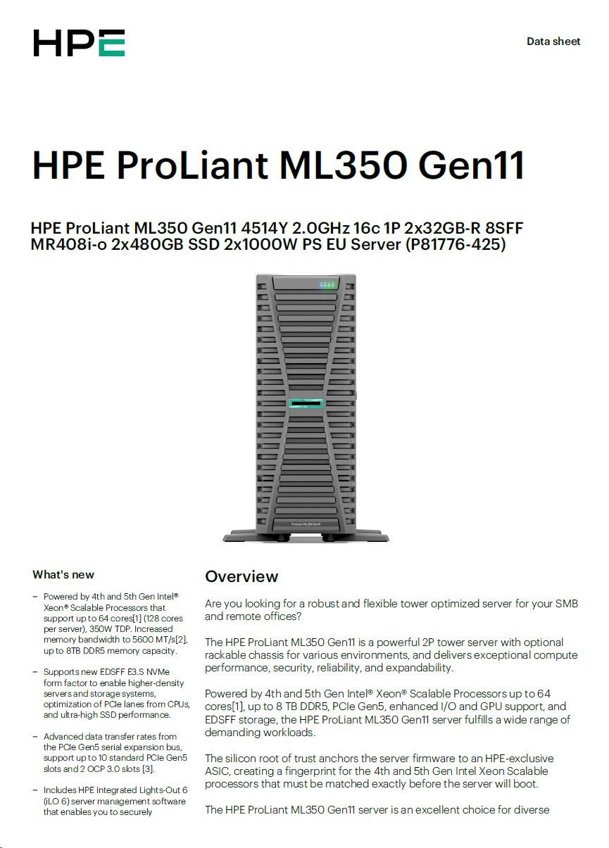 HPE ProLiant ML350 Gen11 - Smart Choice Models | |