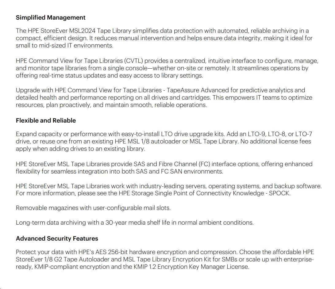 HPE Storage MSL2024 Tape Library 1x MSL LTO-9 SAS Drive 15x LTO-9 45TB Data Cartridges.