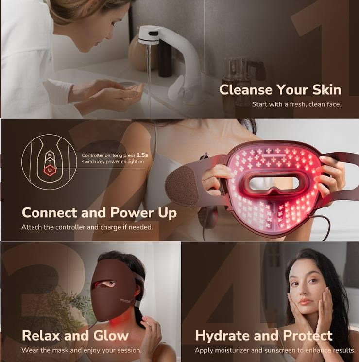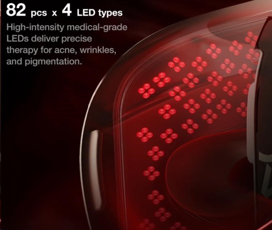 - Profesionální 4-spektrální LED terapie: Vybavena celkem 328 (82 x 4) vysoce intenzivními LED diodami pro maximální pokrytí a účinnost.