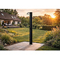 Zahradní dvoudílná a skladná sprcha DUO s objemem 40 l pro venkovní použití zajistí ohřev vody přiváděné ze zahradní hadice a tím perfektní pocit pohodlí při sprchování teplou nebo vlažnou vodou. Sprcha má pákovou baterii i kohoutek na oplach nohou. Ohřev vody zajišťuje sluneční záření a tělo sprchy, které funguje jako solární kolektor. Pro sprchování musí být zahradní sprcha stále napojena na vodovodní řad. Není-li napojena, nelze se sprchovat. Sprcha se kotví pomocí 4 šroubů (nejsou součástí balení) pevně k zemi, čímž je zajištěna její perfektní stabilita.