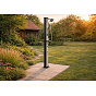 Zahradní dvoudílná a skladná sprcha DUO v oktagonovém provedení s objemem 60 l pro venkovní použití zajistí ohřev vody přiváděné ze zahradní hadice a tím perfektní pocit pohodlí při sprchování teplou nebo vlažnou vodou. Sprcha má pákovou baterii, ruční sprchu i kohoutek na oplach nohou. Ohřev vody zajišťuje sluneční záření a tělo sprchy, které funguje jako solární kolektor. Pro sprchování musí být zahradní sprcha stále napojena na vodovodní řad. Není-li napojena, nelze se sprchovat. Sprcha se kotví pomocí 4 šroubů (nejsou součástí balení) pevně k zemi, čímž je zajištěna její perfektní stabilita.