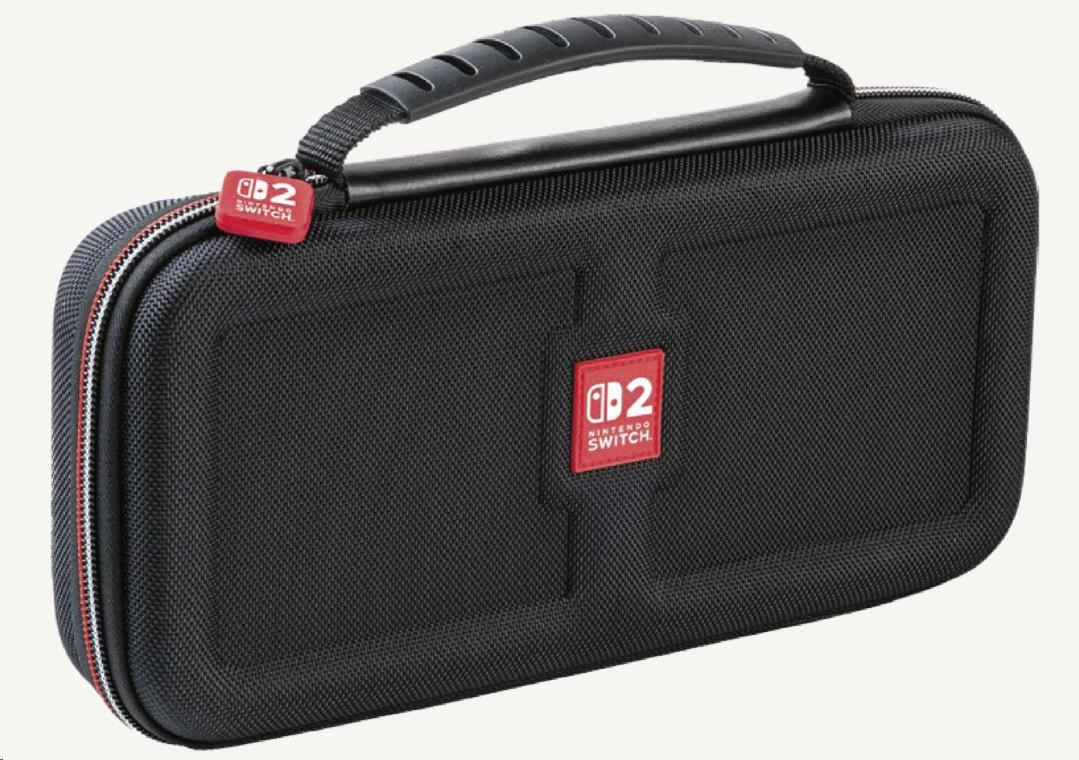 V tomto luxusním přepravním pouzdru od společnosti Nacon můžete bezpečně a pohodlně přenášet nejenom novou herní konzoli Nintendo Switch 2, ale také herní konzoli Nintendo Switch nebo Switch – OLED Model. Ústředním prvkem tohoto pouzdra je nastavitelný stojánek, který při hraní umožňuje pohodlněji sledovat dění na obrazovce, zatímco při přepravě chrání obrazovku i analogové páčky konzole před poškozením. Na jeho vnitřní straně se navíc nachází dvanáct kapsiček pro uložení karet s vašimi oblíbenými hrami. Součástí balení jsou pak také dvě menší plastová pouzdra pro microSD karty.