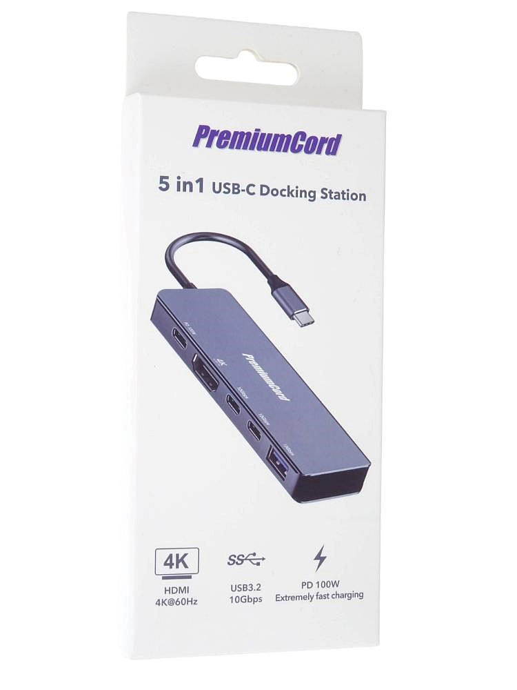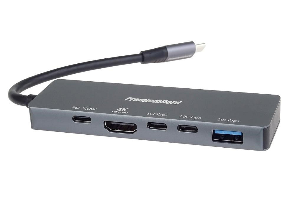 PremiumCord Adaptér USB-C na 4K@60Hz HDMI + 10G USB3.2 A + 10G 2x USB-C + PD