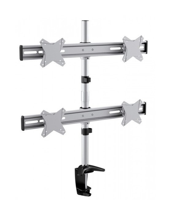 Stolní hliníkový držák s upevňovací klemou pro 1x LCD monitor a menší TV s uhlopříčkou 10"- 27" a hmotností maximálně 5kg. 51cm rameno - 3x pant, vertikální výtah +15-85° GasSpring, horizontálně otočný 360°, reproduktor a USB slot, moderní design. barva černá. Uchycení VESA: 75x75, 100x100..