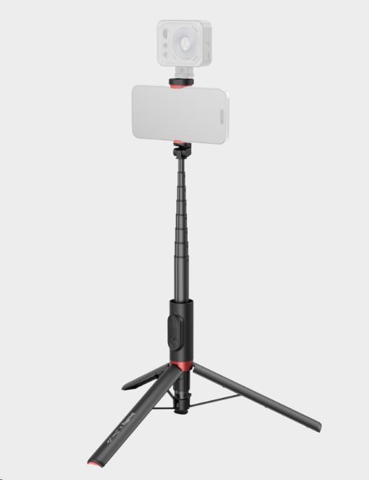 Držák telefonu je kompatibilní s většinou chytrých telefonů (šířka 40-100 mm) a nabízí nastavitelné úhly, včetně náklonu 180° a otáčení o 360°, což umožňuje pořizování záběrů z různých perspektiv.