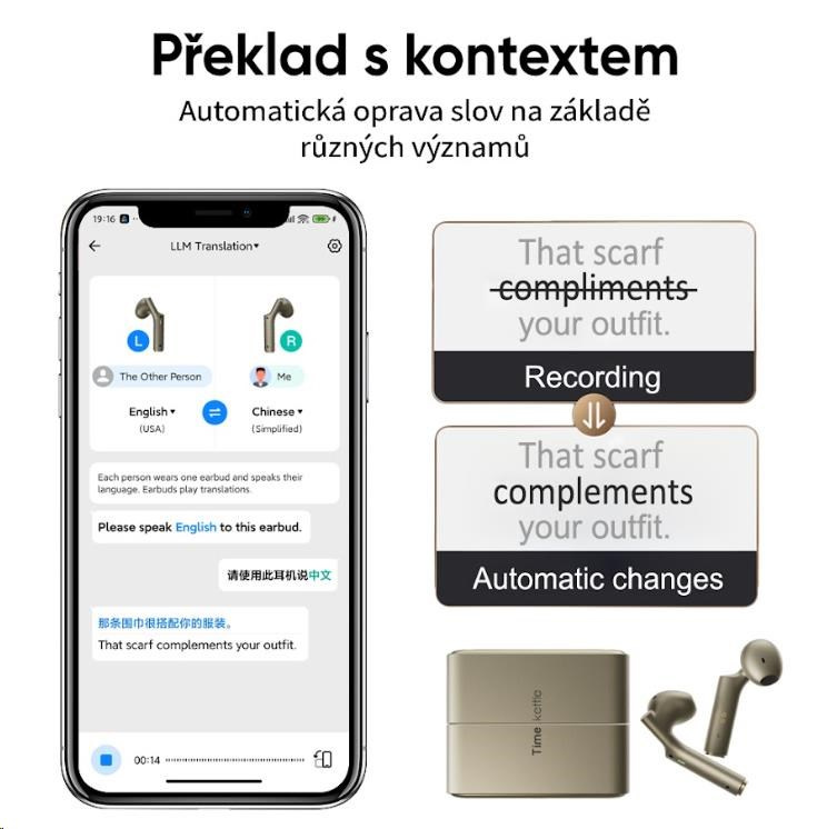 S dobíjecím pouzdrem až 10 hodin překladu